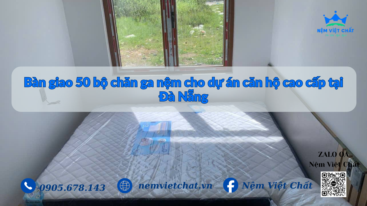 Nệm Việt Chất hoàn tất bàn giao 50 bộ chăn ga nệm cho dự án căn hộ dịch vụ. Giải pháp giấc ngủ tối ưu, giá sỉ tận xưởng, bảo hành dài hạn cho các chủ đầu tư tại Đà Nẵng.