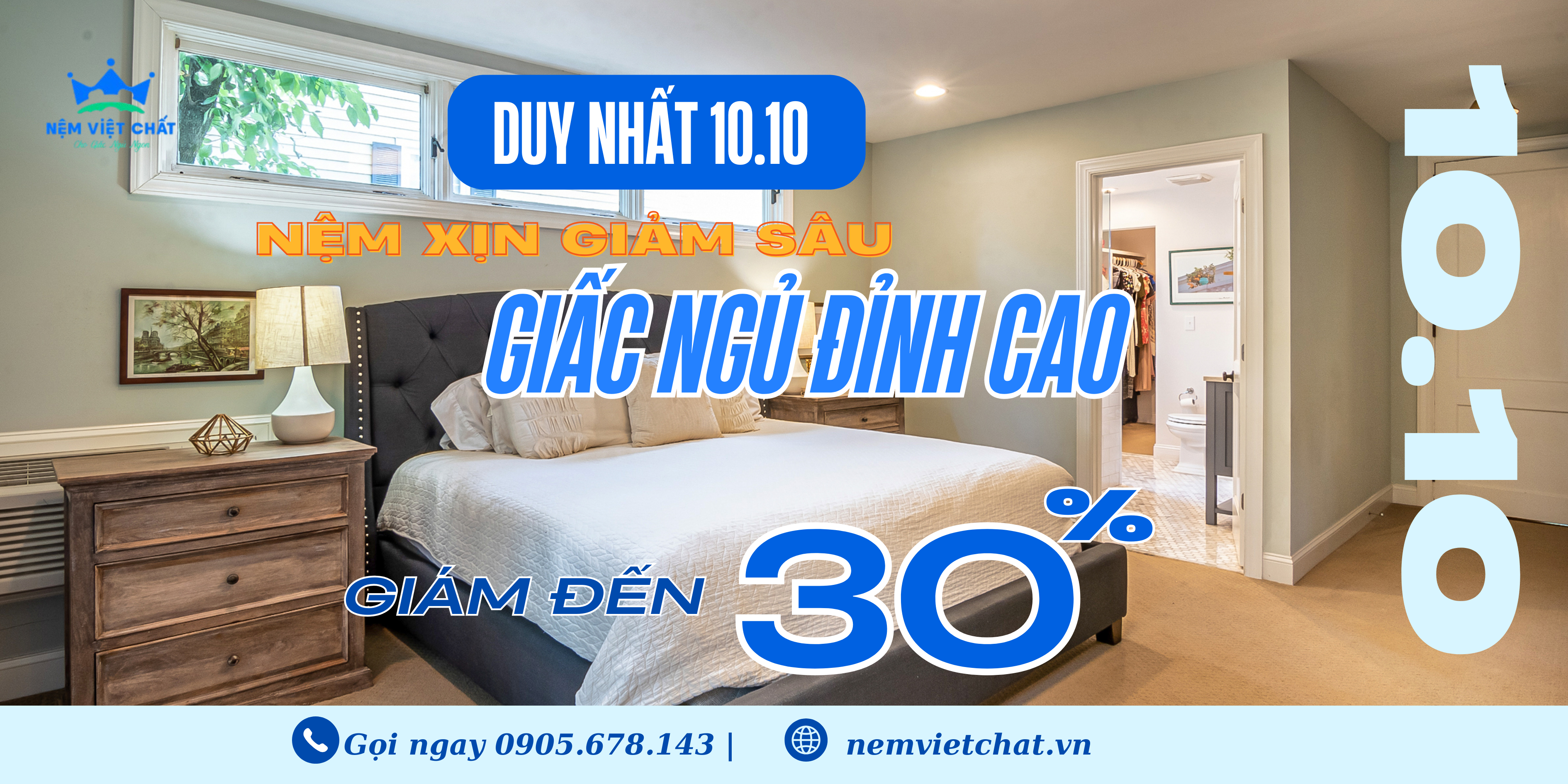 Chỉ còn 2 ngày Super Sale 10.10! Nệm Việt Chất - địa chỉ mua nệm uy tín tại Đà Nẵng giảm đến 30% toàn bộ dòng nệm Đà Nẵng cao cấp – nệm cao su non, nệm thiên nhiên, giao nhanh tận nhà.