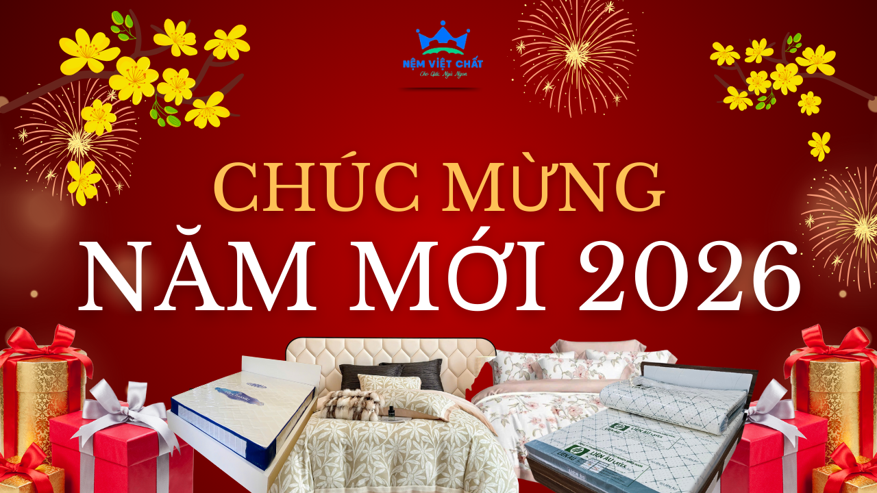 Nệm Việt Nhất trân trọng gửi lời chúc mừng năm mới 2026 đến Quý Khách hàng và Đối tác. Cảm ơn sự tin tưởng trong suốt thời gian qua và cam kết tiếp tục mang đến sản phẩm nệm chất lượng, an toàn cho sức khỏe trong năm mới.