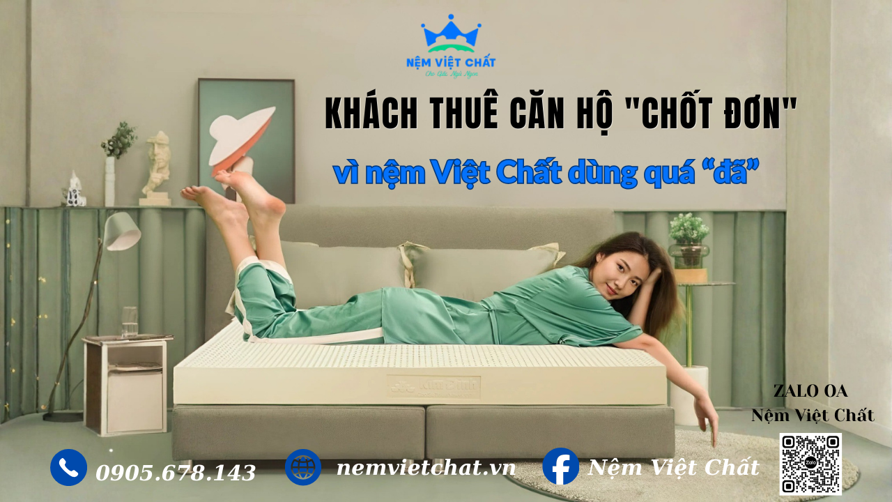 Nệm Việt Chất – Địa chỉ mua nệm chất lượng cao. Giao hàng tận nơi, bảo hành dài hạn, giá tốt nhất. Khuyến mãi lên đến 20%! Liên hệ ngay để được tư vấn!
