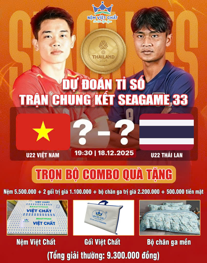 MINIGAME - BỘ QUÀ TẶNG TRỊ GIÁ 9.300.000Đ. Cùng Nệm Việt Chất Tiếp Lửa Cho U22 Việt Nam Vô Địch SEA Games 33!
