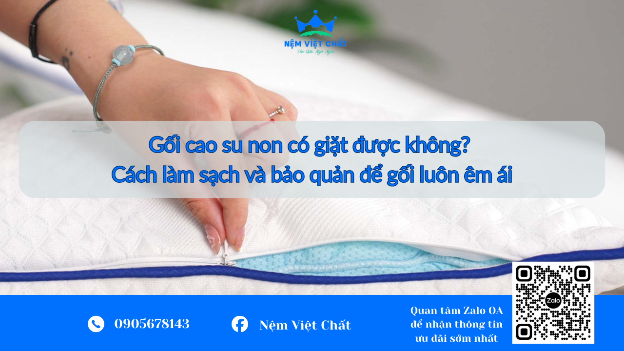 Gối cao su non có giặt được không và cách làm sạch gối cao su non đúng chuẩn? Hướng dẫn chi tiết cách giặt, vệ sinh và bảo quản gối cao su non để giữ gối êm ái lâu dài, giữ form tốt và an toàn cho sức khỏe người dùng.