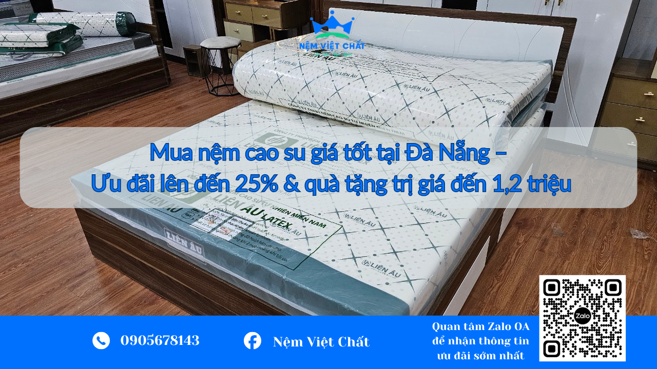 👉 Đến ngay Nệm Việt Chất – địa chỉ mua nệm uy tín Đà Nẵng để được tư vấn và trải nghiệm thực tế các dòng nệm cao su nguyên chất phù hợp nhất cho bạn và gia đình.